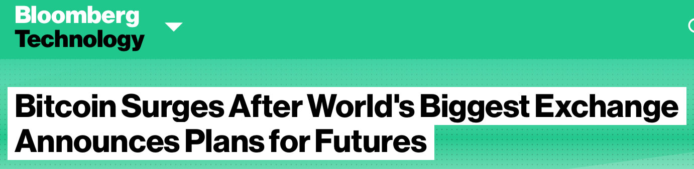 【 全球最大期货交易所宣布推出比特币期货】全球最大期货交易所芝加哥商业交易所集团(CME)宣布计划在今年年底前推出比特币期货。消息一出,已经在今年连翻六倍的比特币价格再次创下新高。