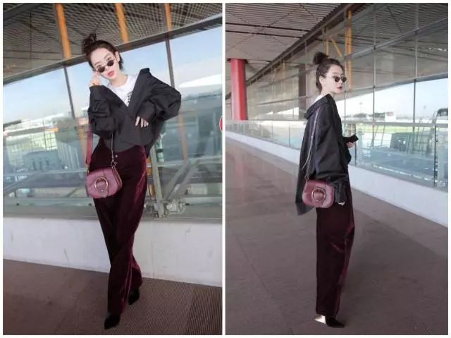 不一其人,戚薇也曾在机场的一次摆拍中穿过无跟鞋。从正面看,包包鞋子裤子都是同色系的搭配十分养眼,可是侧过身,这看上去仿若三寸金莲般的鞋子实在让人难以言喻。