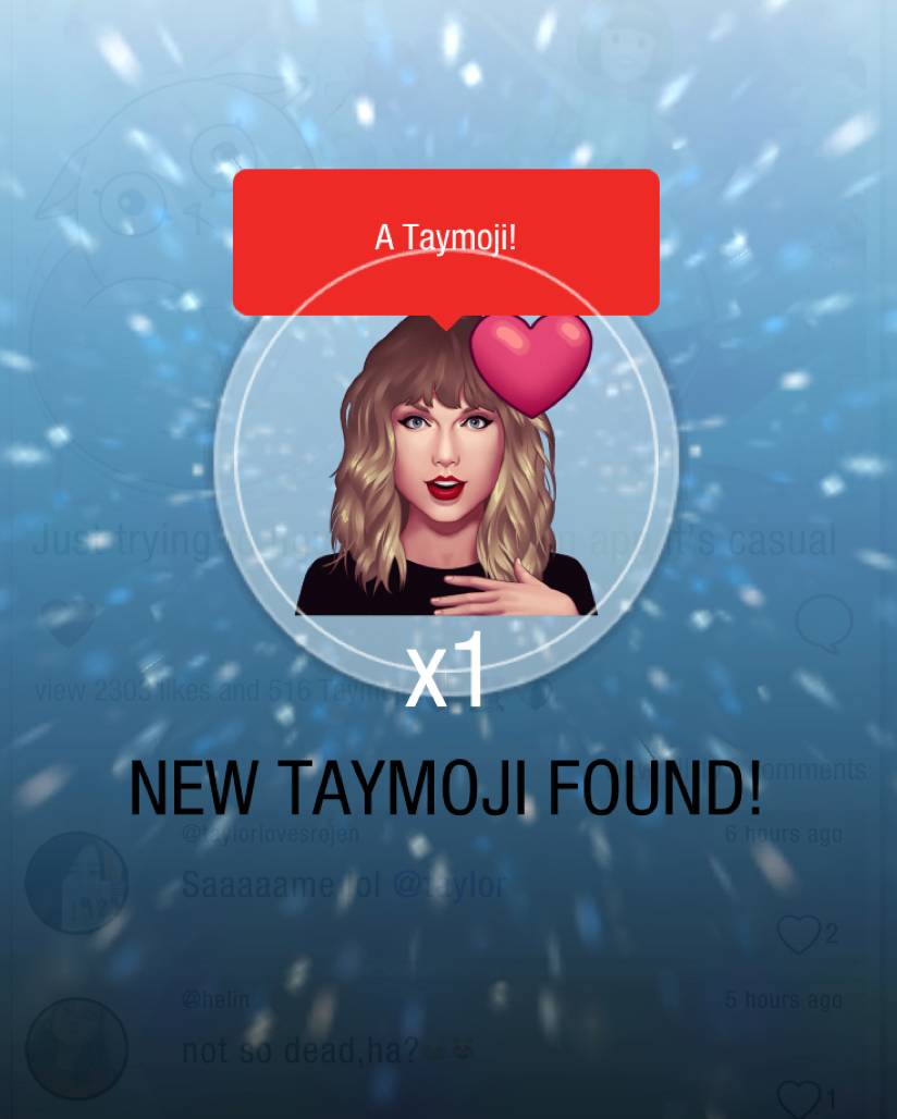作为一款主打粉丝社交的定制app,Taylor在The Swift Life中内置了一套全新的专属个人表情包——Taymoji,表情包素材取自3年前的《1989》和新专辑《Rreputation》已发布的两只MV。为了提高app的趣味性和用户粘性,粉丝们要获得所有Taymoji只能在使用app过程中一步步解锁收集。