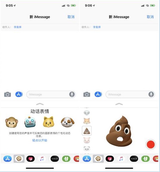 因为前置摄像头可以感知面部,所以在iMessage中新增的Animoji表情功能也是一个小亮点。你可以录一段跟你自己同步的表情加语音,发送给朋友。