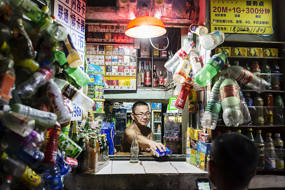 午夜过后,一家士多店仍在营业。老板说,广州人有吃宵夜的习惯,而西华路食肆众多,不少食客酒足饭饱之后会过来买玻璃瓶装的汽水,所以他每天都要到凌晨4、5点才打烊。