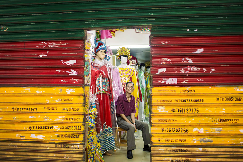 广州市越秀区人民南路,清晨8时,状元坊戏服厂刚刚打开卷帘门上的小门,年过七旬的老员工坐在门内守护店中的工艺品,他与旁边站立的一位身着古老戏服的现代模特形成了有趣的反差。随着近年来粤剧的式微,戏服行业每况愈下,这一家“状元坊戏服厂”已是广州最后一家戏服制作厂。