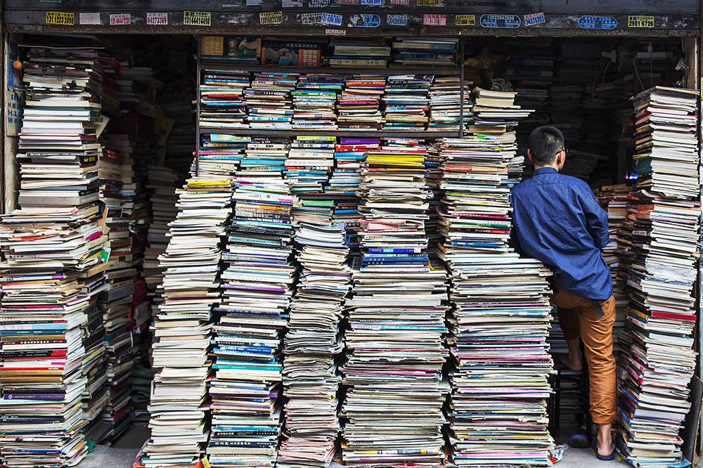 旧书铺里,所有书都被堆在一起,等着能够读懂它们的人。