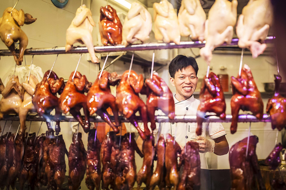 一家老字号烧鹅店,年轻的伙计对顾客露出八颗牙的灿烂微笑。来买烧鹅的街坊说这家铺子已经开了几十年,龙津西路菜市场周边最好吃的一家,人多的时候排长龙是常有的事。