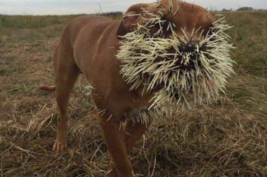 作死挑逗豪猪后的汪星人,“信不信我让你回家后连你妈都认不出你!”