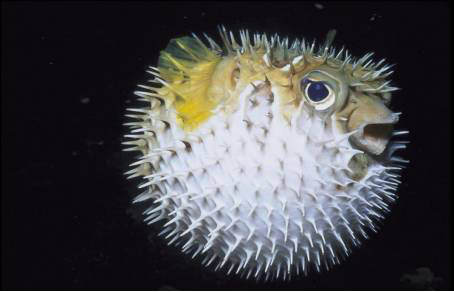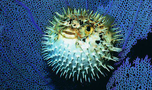 当遇到危险时,刺鲀会瞬间吸入大量海水或空气,身体迅速膨胀的同时,刺也向外立起,以保护自己不受外敌的侵害。