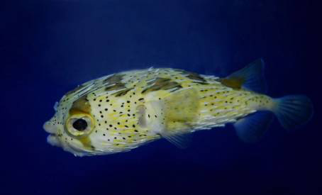 刺鲀浑身长满由鳞演化而成的刺,这些刺平时倒伏在身体表面。