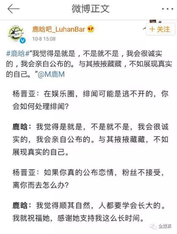 两个小时之后,鹿晗吧发布了以往采访的截图,引用了偶像此前的回应。在这场饭圈危机中,鹿晗吧借当事人曾经的表态顺势塑造了偶像耿直的形象,以此转移公众对问题的关注点。