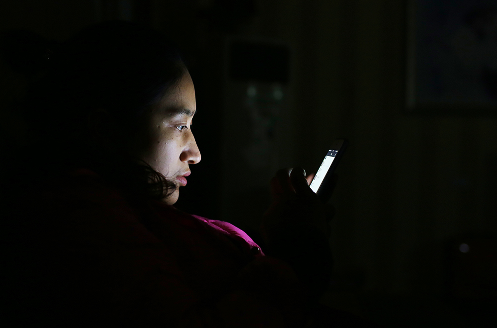 入睡前,白雪正在通过手机微信回复客户,手机对于她来说,是生活中离不开的一部分。