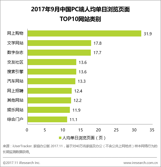 使用深度:网上购物再次领先,人均单日浏览31.9页