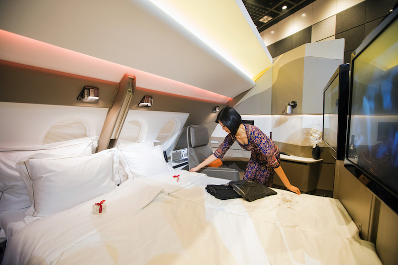 2017年,距离新加坡航空从空中客车公司接收第一架A380至今已经有10年了,作为航空业第一个在A380上设计出suites双人卧床的航空公司,四年前,应对来自中东航空公司的激烈竞争,他们开始将A380全新客舱设计提上日程。
