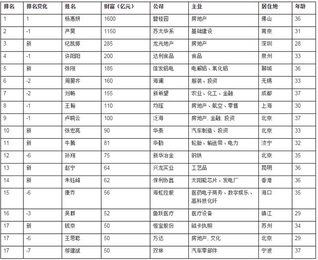 《胡润80后财富继承富豪榜》: