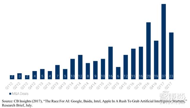 随着计算机和大数据的发展,近两年人工智能技术越来越多的应用于诊断疾病、翻译语言和驾驶汽车等。世界经济论坛报告显示,全球针对人工智能创企的投资从2011年的2.82亿美元增长到2015年的24亿美元,此间并购交易也在加剧。