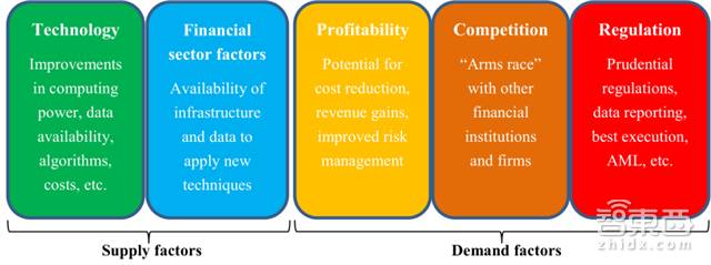 从供给端看,人工智能和机器学习为金融市场参与者提供了可用的工具,包括云服务、更快的数据处理/解析、更低成本的目标数据库、能够自动学习和进行预测的数据模型等。