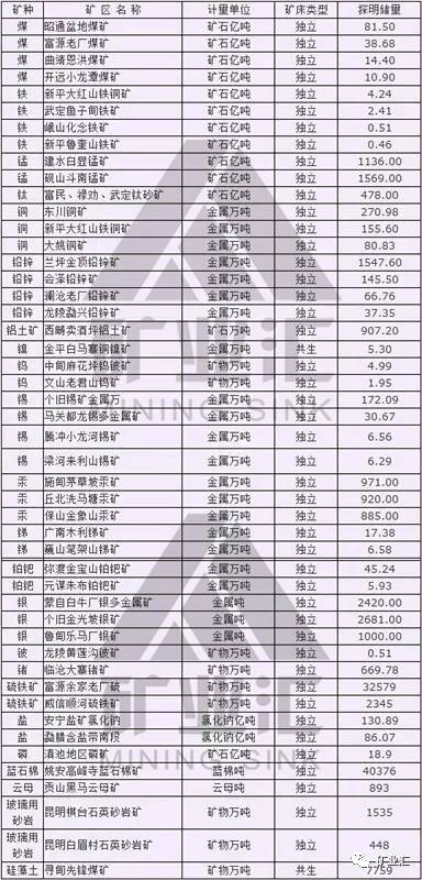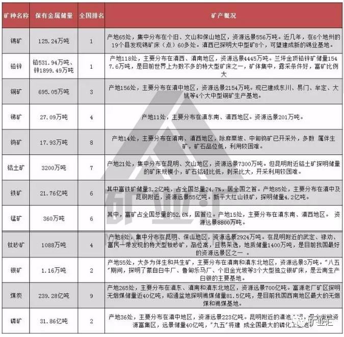 云南重点矿种主要矿产区及储量