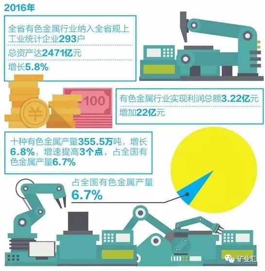 10种有色金属产量355.5万吨,增长6.8%,增速提高3个点,占全国有色金属产量6.7%。