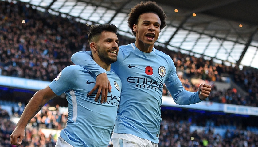 19’德布劳内,50’阿圭罗(点球),74’热苏斯/65’拉卡泽特