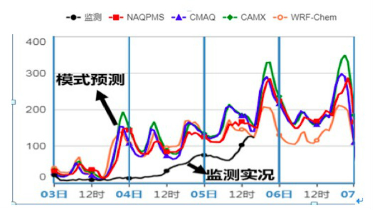 问:针对这次污染过程,为什么老百姓感受到的实际空气质量比发布的预测要好,重污染发生时间也比预测的晚?