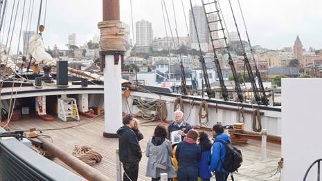 海运国家历史公园位于旧金山,由古老战舰区、游客中心、海运博物馆和一个图书馆构成。