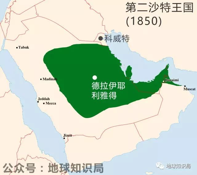 沙特第二王国比第一王国小了很多