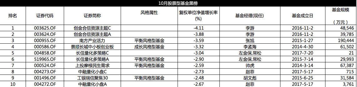 下面来看一下综合得分最低的10只基金:
