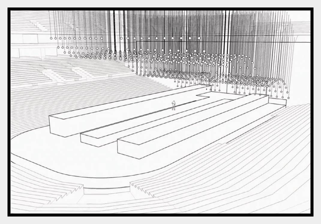 至于T台,目前有两种概念设计图,不知道上边这个歪七扭八的T台会不会很容易让超模们的噩梦成真,一不小心栽跟头。
