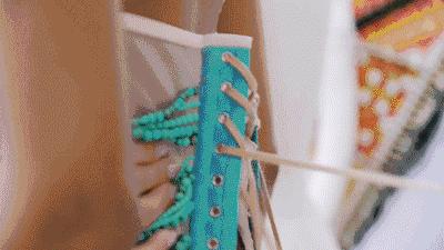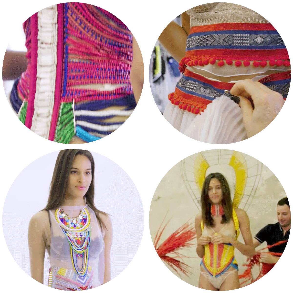 从目前流出的服装细节图来看,颜色很丰富,到处都是部落的图腾,小穗穗、串珠等装饰品。