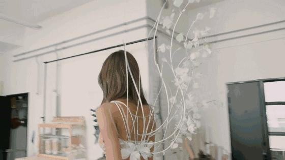 我发现维密很会玩惊喜,Lais当时去试了一套女神环节的衣服,然后工作人员说她还有一套要换,然后默默地推来了一个人台,还用黑布罩着,