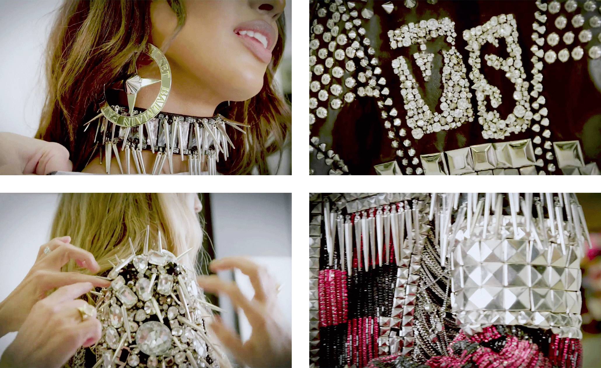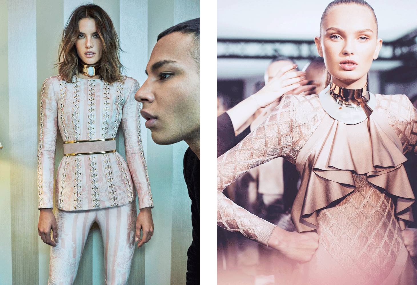 朋克天使则被Balmain承包,Balmain联合VS推出了系列秀服,夸张的耳环、Choker,以及衣服上遍布的铆钉,每一个元素都很摇滚,也很符合Balmain的卡戴珊式华丽。