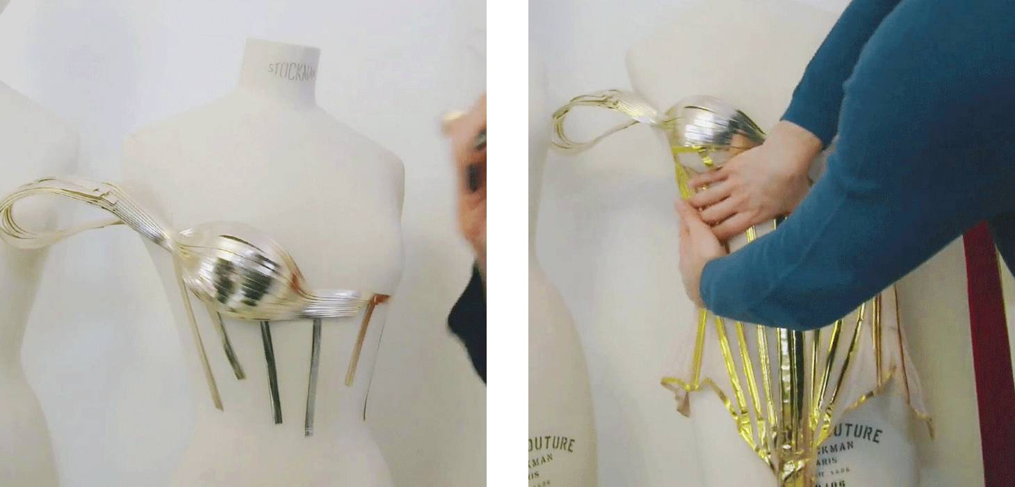 上面有各种手工镶嵌的钻石,蓝、黄宝石还有蓝色托帕石,它们被镶到了一个18克拉的纯金内衣上,花了350个小时,一共有6000多颗珠宝。嗯,希望宇博这次去后台可以在厕所捡到一两颗~