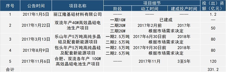 界面新闻记者统计发现,自1月5日至11月6日,通威股份分别在单晶硅棒、晶硅电池、多晶硅料这三个光伏产业链环节陆续披露重要投资项目,累计计划投(出)资额高达331.2亿元。