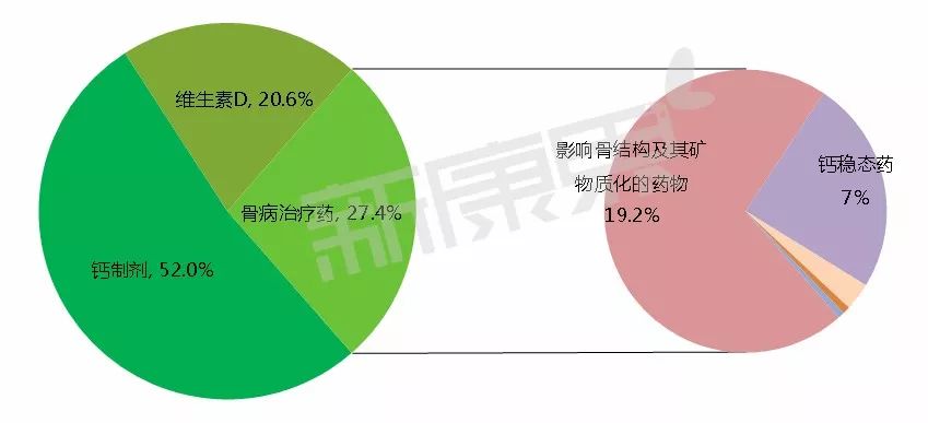 骨质疏松药物各类别占比情况