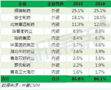 2016年骨质疏松用药零售市场份额TOP10厂家