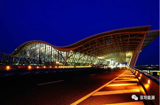 合肥新桥机场在2013年5月30日正式启用,屋面采用金黄色的直立锁边铝镁锰合金面板,规律设置19排屋面采光天窗。俯视整个建筑,宛若金色的展翅大鹏在江淮分水岭上昂首欲飞,既是一张代表合肥形象的新“名片”,也是安徽又一标志性新景观。该机场分布式光伏发电项目贯彻节能减排理念,在优化能源系统运行效率的同时,有效推动了合肥市“中国光伏应用第一城”的构建,促进我国“绿色机场”的可持续发展。