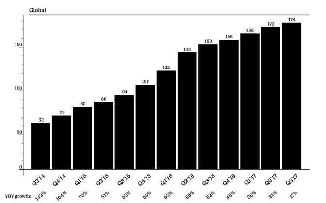 问题依然出在日活上,这是Snap自上市以来,连续第3次日活增长率下降。考虑到Snap的用户基数到现在也只有1.78亿,这样的增长率已经难以让人满意,更何况增长率下滑的趋势已经持续了3个季度,Snap依然没有找到好的办法恢复增长。投资者担心它很快会变成像Twitter一样平缓,甚至出现负增长。