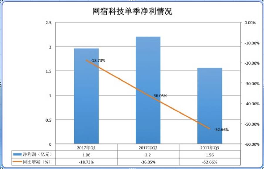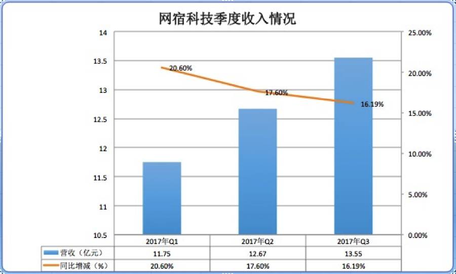 2017年第三季度,网宿科技营业收入13.55亿元,同比增长16.19%;归属于上市公司股东的净利润为1.56亿元,同比大降52.66%。今年前三季度,该公司营收同比增长17.84%至37.97亿元,净利润则同比降37.53%至5.72亿元。