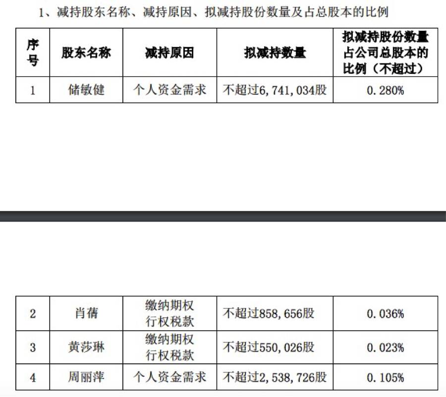11月6日,网宿科技发布公告称,公司副总裁储敏健、黄莎琳,副总裁肖蒨、董事会秘书周丽萍拟未来3个月内以集合竞价的方式,合计减持公司股票不超过约1069万股,约占公司总股本的0.44%。上述高管的减持原因包括个人资金需求、缴纳期权行权税款,本次减持价格根据减持时的市场价格确定。