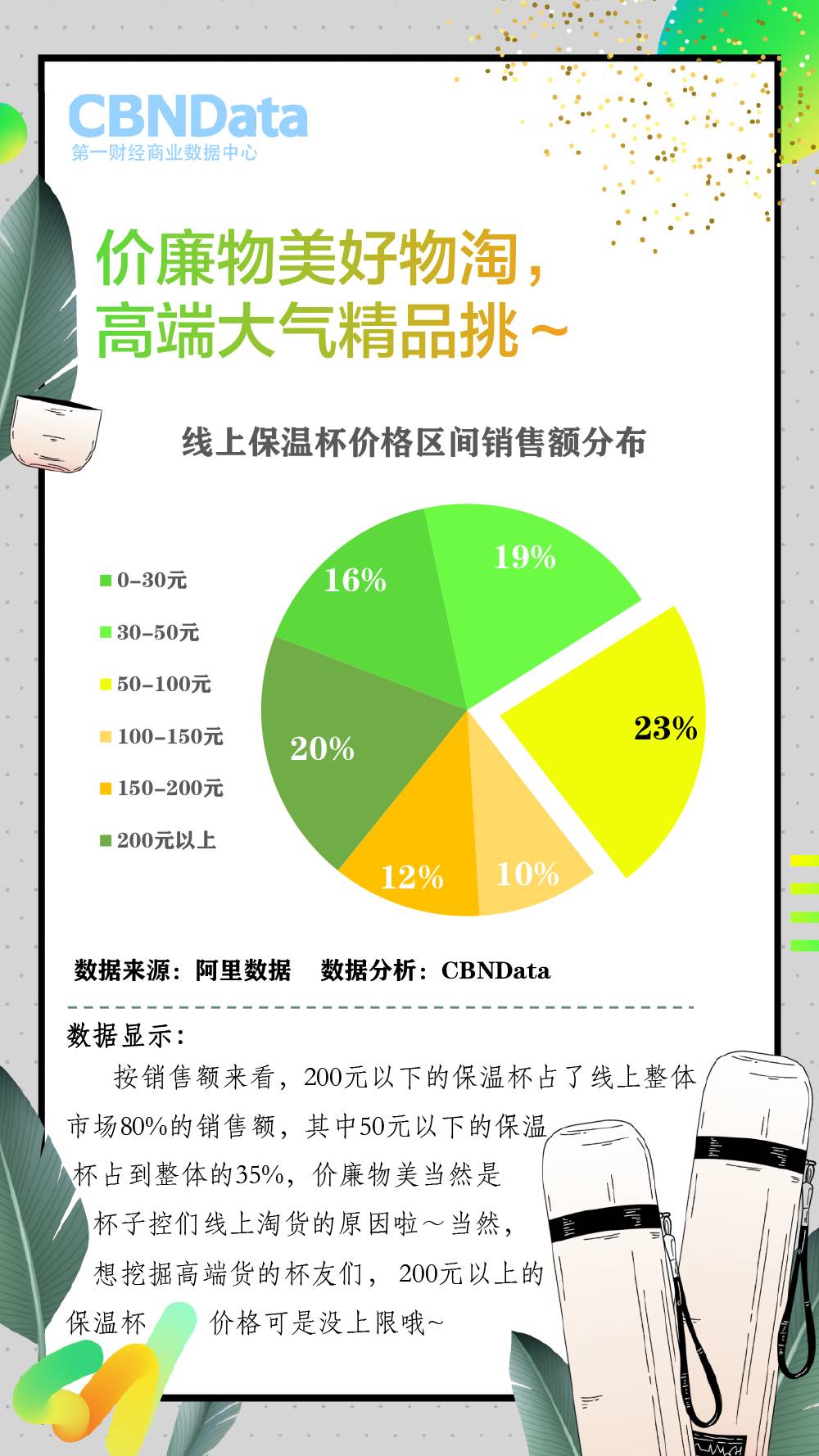 既然免不了有手捧保温杯的一天,那不如现在就开始买起,适应手感!根据CBNData《研究》显示,按保温杯价格区间销售额来看,200元以下的保温杯占了整体80%的销售额,其中50元以下的占了整体的35%。不超过一百元就能轻松拥有一只实惠的保温杯来练手啦!