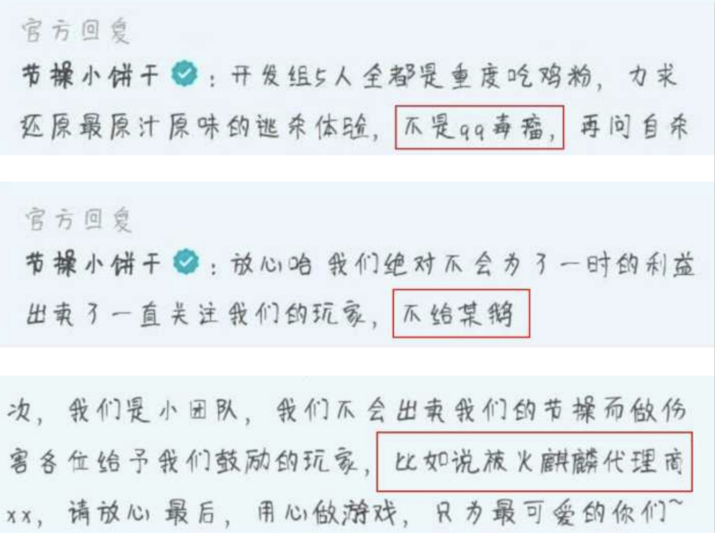 在3个月前,官方做此声明的动机是可以理解的,当时《光荣使命》的开发团队,是一个情怀满满的5人小团队,是“资深吃鸡粉”,是“不为盈利,只为最可爱的人们”的理想开发者,这样独立气息充沛,富有情怀的团队,有着完美的“人设”,怎么能跟老被人吐槽的腾讯“同流合污”呢,当然要划清界限。