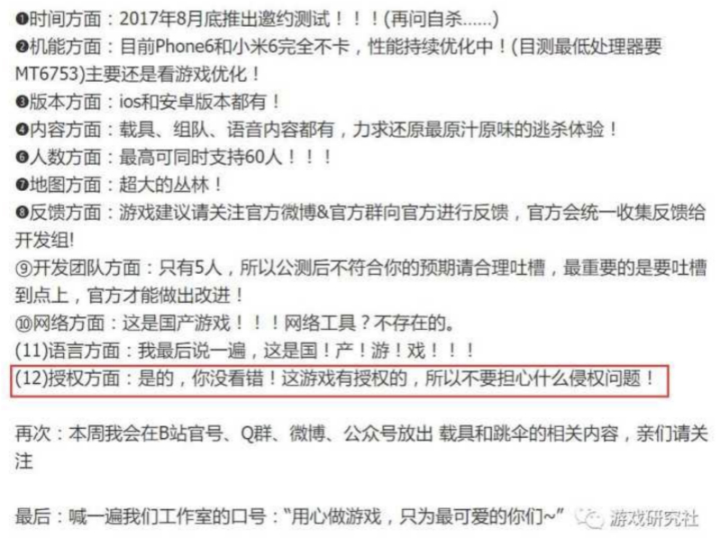 同时,官方公告不止一次地声明,这是一款“有授权的游戏”,所以“不要担心什么侵权问题”。