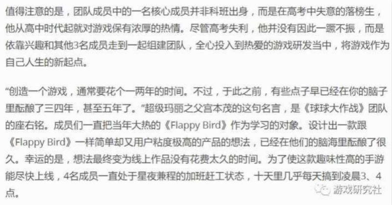 这个套路是不是有些眼熟?是的,他像极了巨人之前无比成功的《球球大作战》。在《球球大作战》最初上市的时候,它也被包装成了一个人畜无害的,充满理想主义情怀的独立游戏。打出了“高考落榜生团队”的宣传口号,将其定位为“黑马团队”。其曝光度之高,连一线大公司的产品都汗颜。特别是有关“报道”还指出,连游戏业内大拿都连连称赞此游戏,更诠释了人生、做事、企业管理发展、甚至社会管理的哲理。