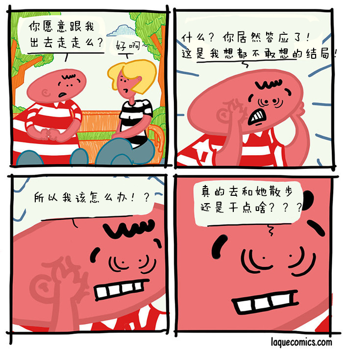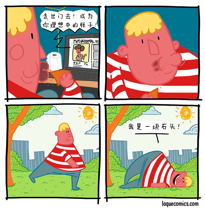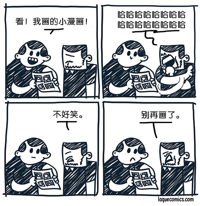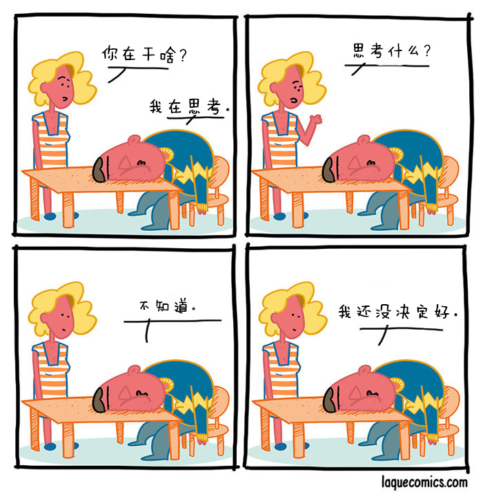 我一直很喜欢漫画,也一直把画漫画当做自己的业余爱好。漫画一直陪伴着我,帮我从单调乏味的日常工作中解脱出来。结束学业之后,我觉得自己要做点和漫画有关的事情,于是在8个月前,我开始了《Laqué Comics!》的连载。漫画的名字Laqué源于我儿时的绰号——不得不承认,我是个取名废。