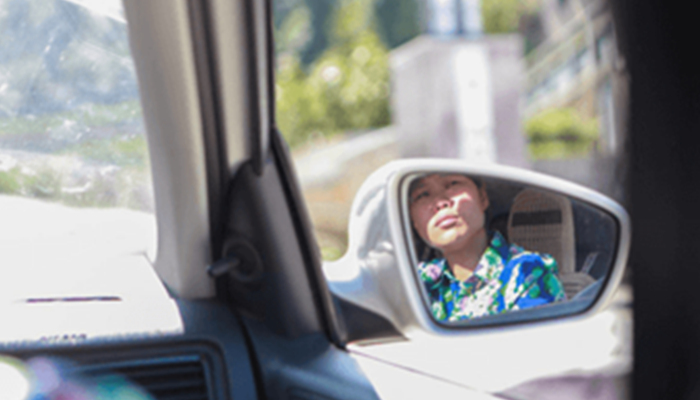 平时,张秋月都是骑摩托车上山采茶,今天,因为我们的到访,她执意要乘坐我们的汽车。后来才知道,她很少乘坐汽车,娘家距离婆家骑车也就十几分钟,在日常生活中,她只是时常看着汽车在自己眼前飞驰而过,却很少能坐在车内看看这片熟悉得不能再熟悉的山光景色。