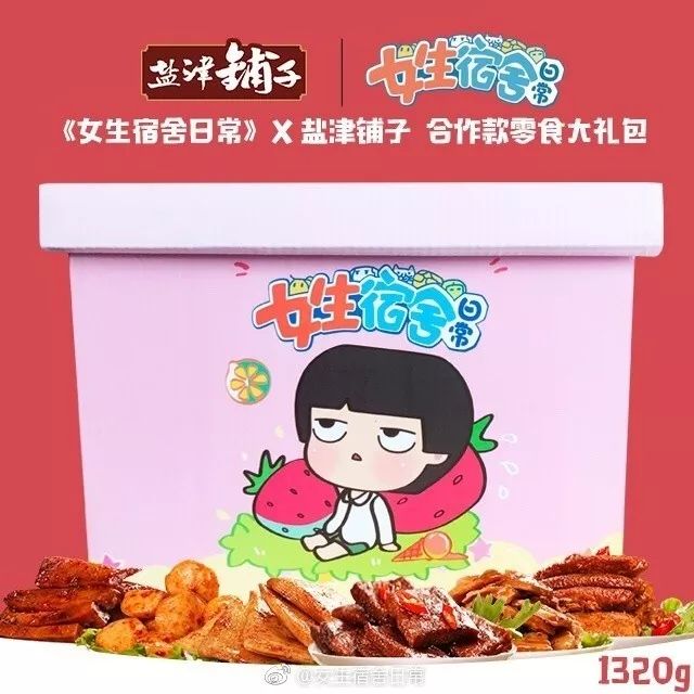 动画播出后,相应的授权合作产品也上市。《女生宿舍日常》和盐津铺子合作零食,同She’s Girl合作胸针,和瑷媄合作定制化妆品等,这些产品针对的目标人群也是20岁左右的女性,和《女生宿舍日常》的观众基本契合。
