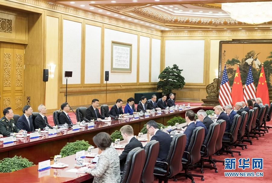 新华社北京11月9日电(记者李忠发、许可)国家主席习近平9日在人民大会堂同美国总统特朗普举行会谈。两国元首就中美关系及共同关心的重要国际和地区问题广泛、深入交换意见。中共中央政治局常委、国务院副总理汪洋出席。