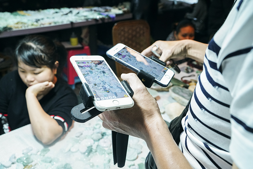 卖家为开拓客源,通过网络直播的形式向外地顾客介绍赌石市场的情况。有买家在网络平台与卖家直接交易。