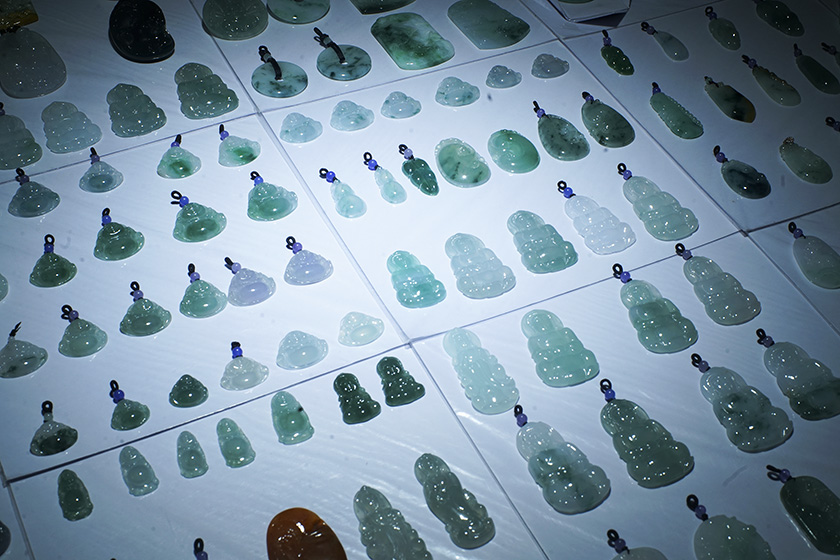 赌石市场里也有商贩兜售成品。通常,不懂玉石的游客会买一些成品当纪念品,而赌石玩家绝少光顾这些成品铺子。