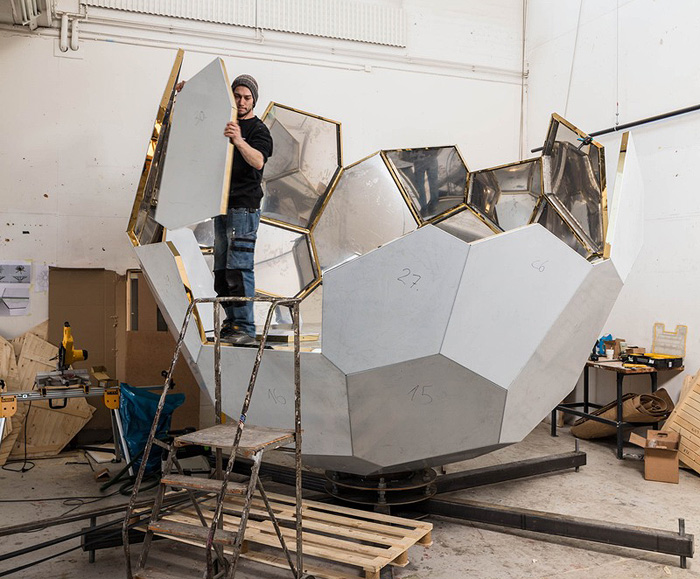 该如何将这样一只蛋型建筑物搬运到巴黎?其实,两位设计师在设计之初已经考虑到这样的可能性,因此,它的外部结构被设计为69块独立的不锈钢金属片,便于运输,也方便人们就地拆装、组合,能够被安放在世界各地的不同角落。