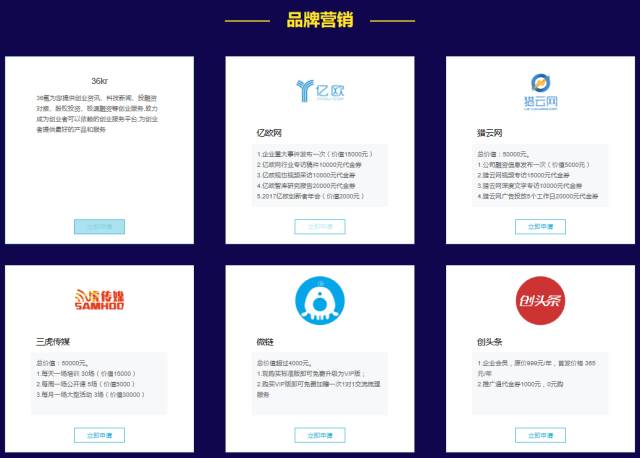 你以为诱惑就到这里,那蜂蜂就被你的天真打败了。以阿里的号召力,双十一创业节自然少不了一波品牌营销合作,各类品牌服务打包等候你。