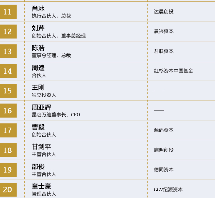 上榜人物详细介绍,请移步链接:2017中国顶级风险投资人榜揭晓,细数哪些投资人入选